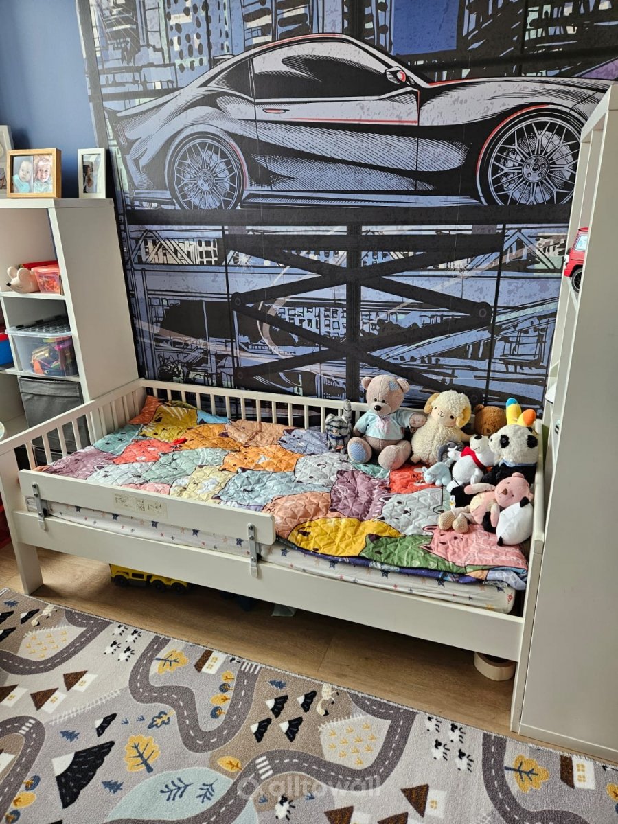 Настенные полотна разработаны специально для спальни или учебной зоны мальчика. Тема изображает работу сервиса. На переднем плане виден спорткар, установленный на подъёмник для диагностики и ТО. Ниже можно увидеть скутер, который ожидает прихода мастера.
