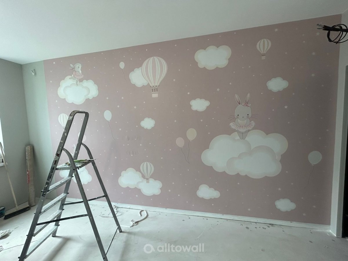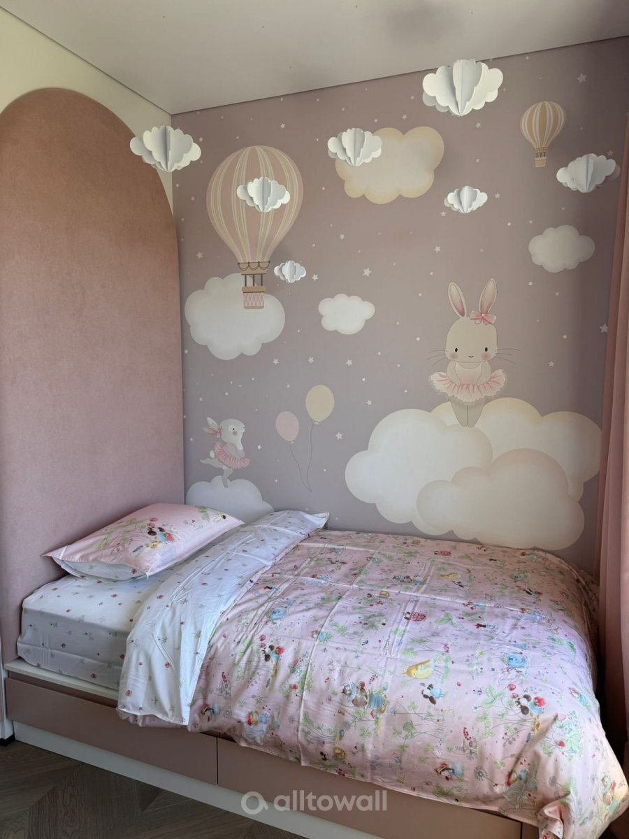 Такие милые обои с облаками отлично подойдут в детскую комнату для поддержания балетной темы, если девочка увлекается танцами или просто любит мультики про балерин. Акцентное полотно можно адаптировать под вашу мебель и элементы дизайна, скорректировать сюжет и цвет, также можно заказать разработку индивидуального дизайна. Обои в пастельной, «пудровой» цветовой гамме будут отлично сочетаться с таким же текстилем, а также с белой или серой мебелью и создадут ощущение чистоты, свежести.