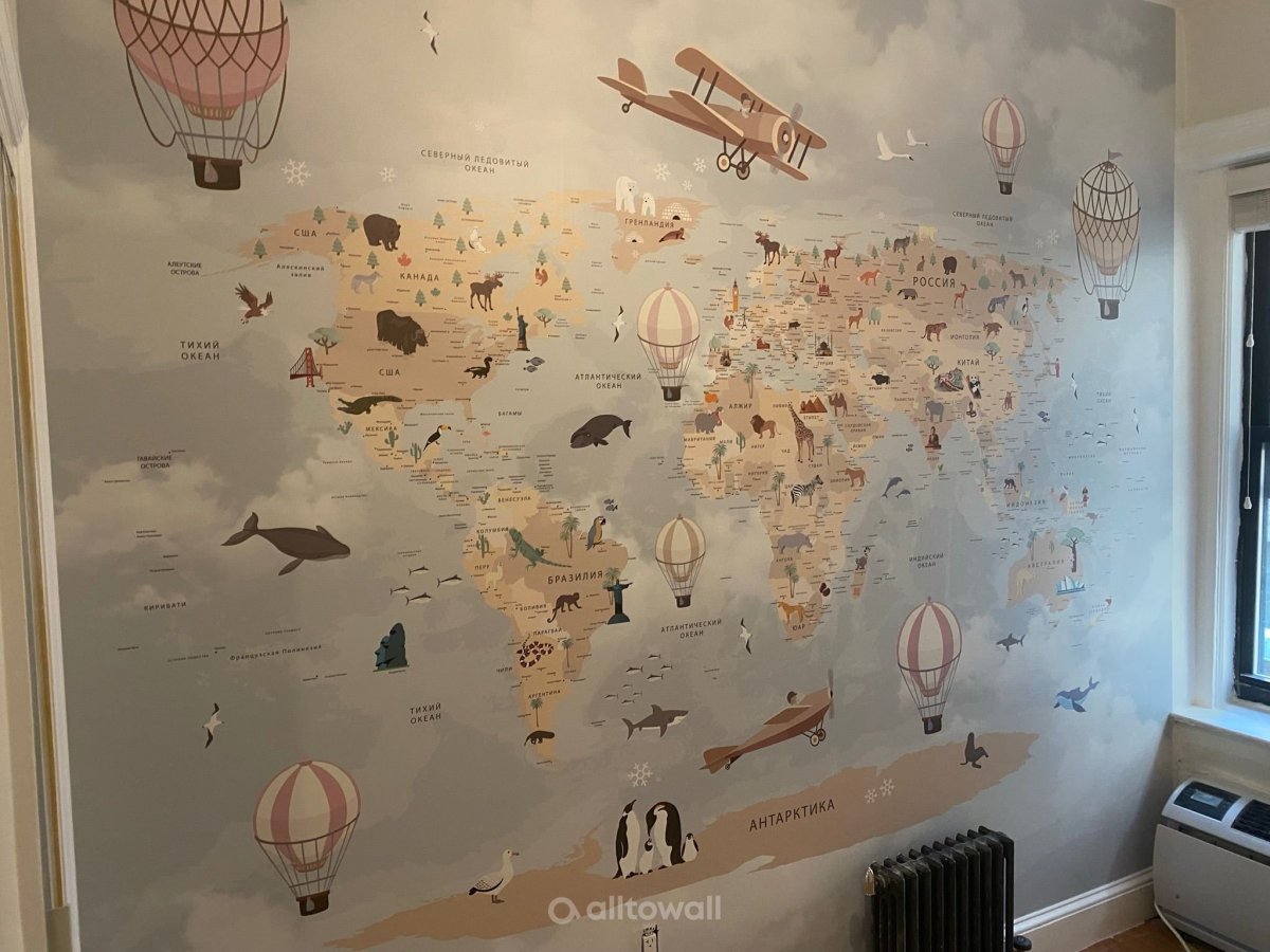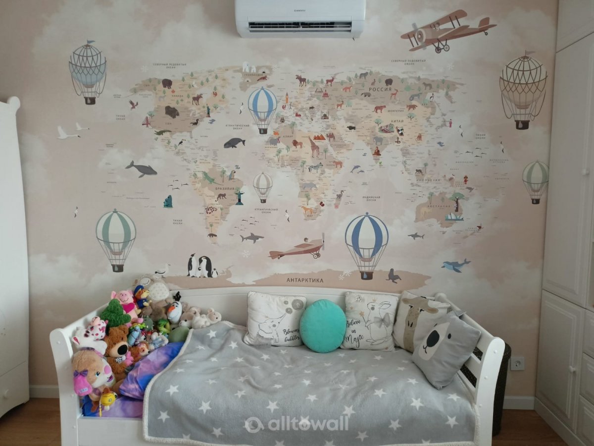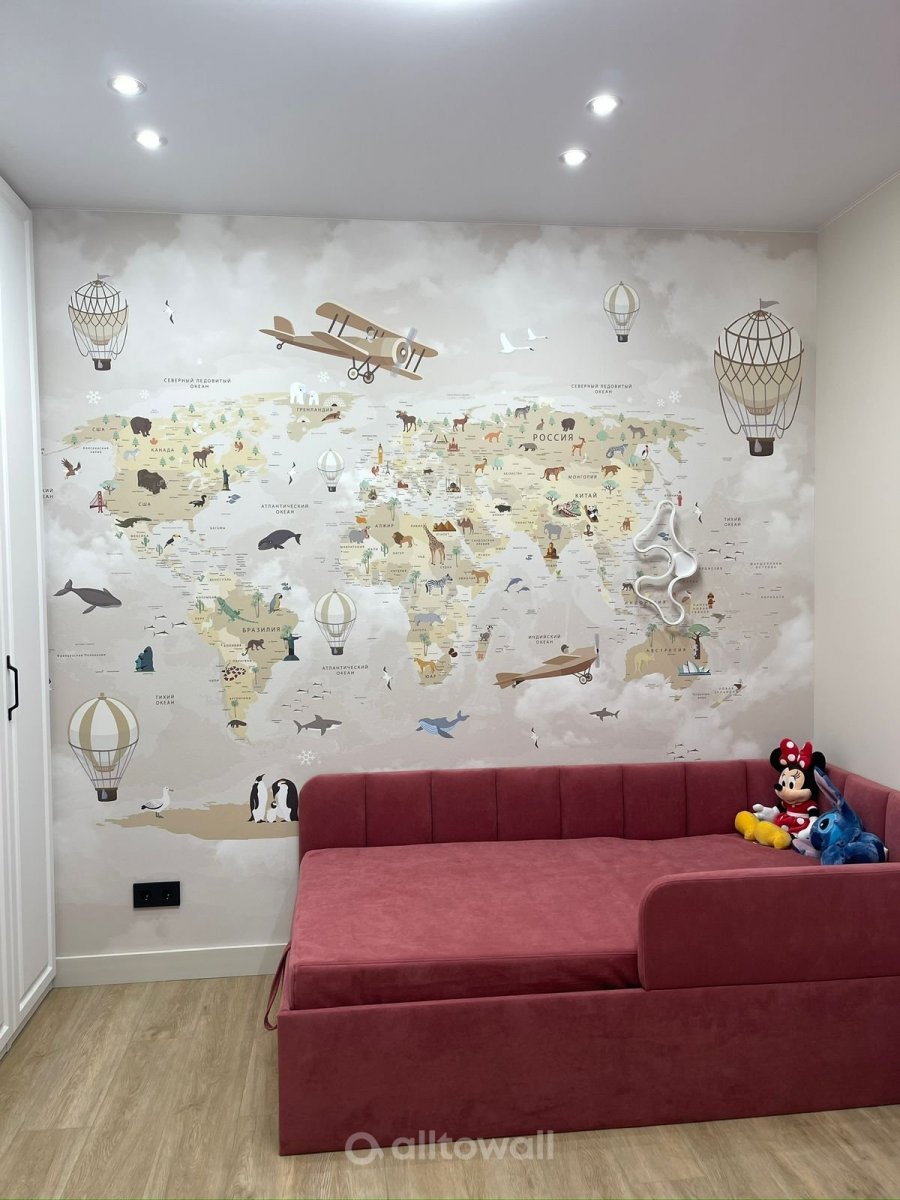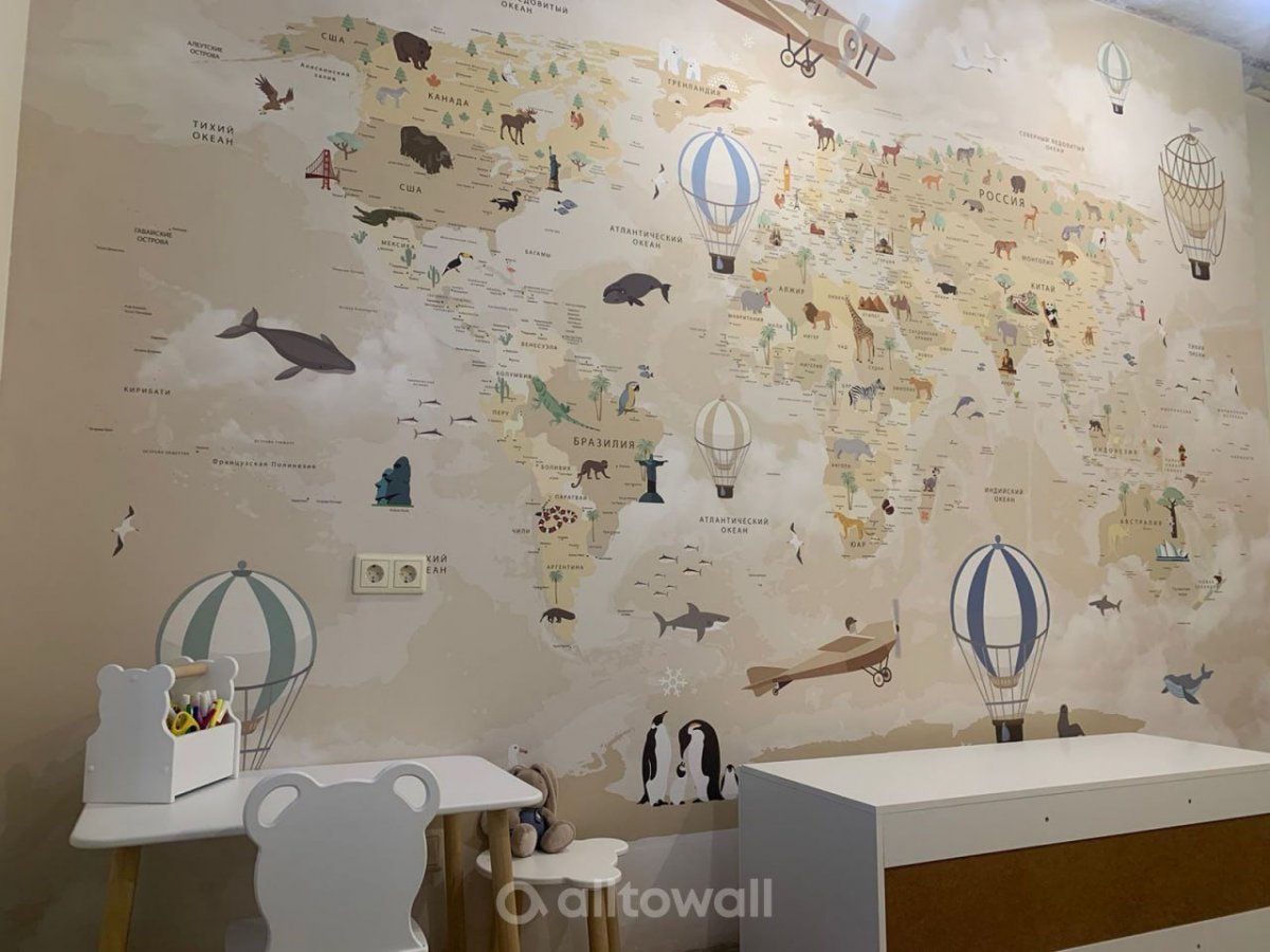 Обои "Супер детальная детская карта мира-13" в интерьерах наших клиентов