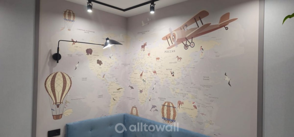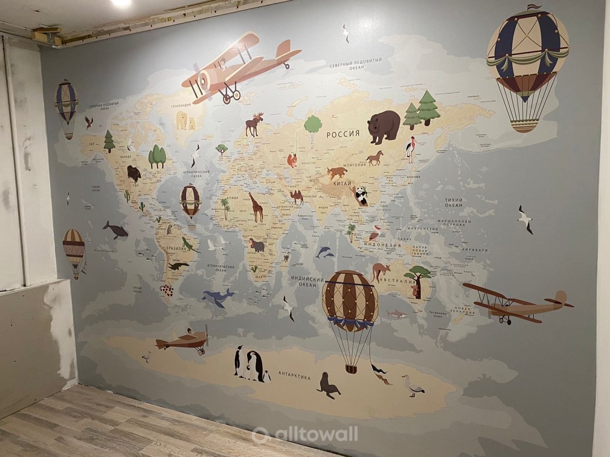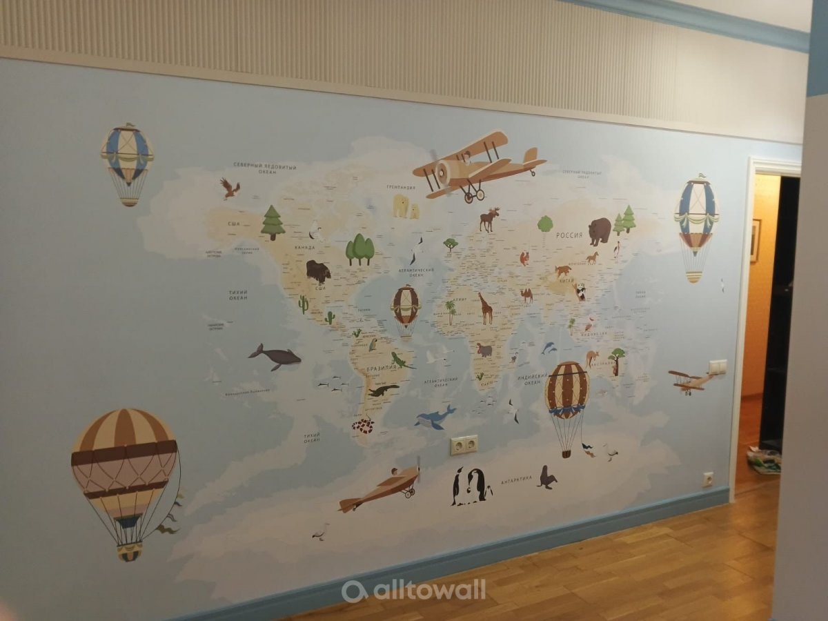 Смотрите все обои с картами мира, чтобы найти тот вариант, который по-настоящему увлечёт и порадует вашего ребёнка. Осуществляем монтаж в Москве и Санкт-Петербурге.