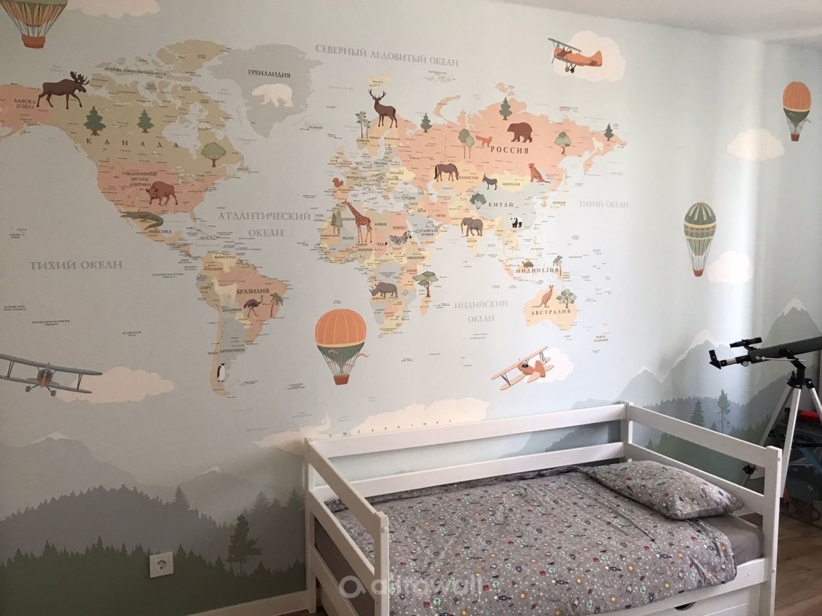 Обои "Детская карта мира с горами" в интерьерах наших клиентов