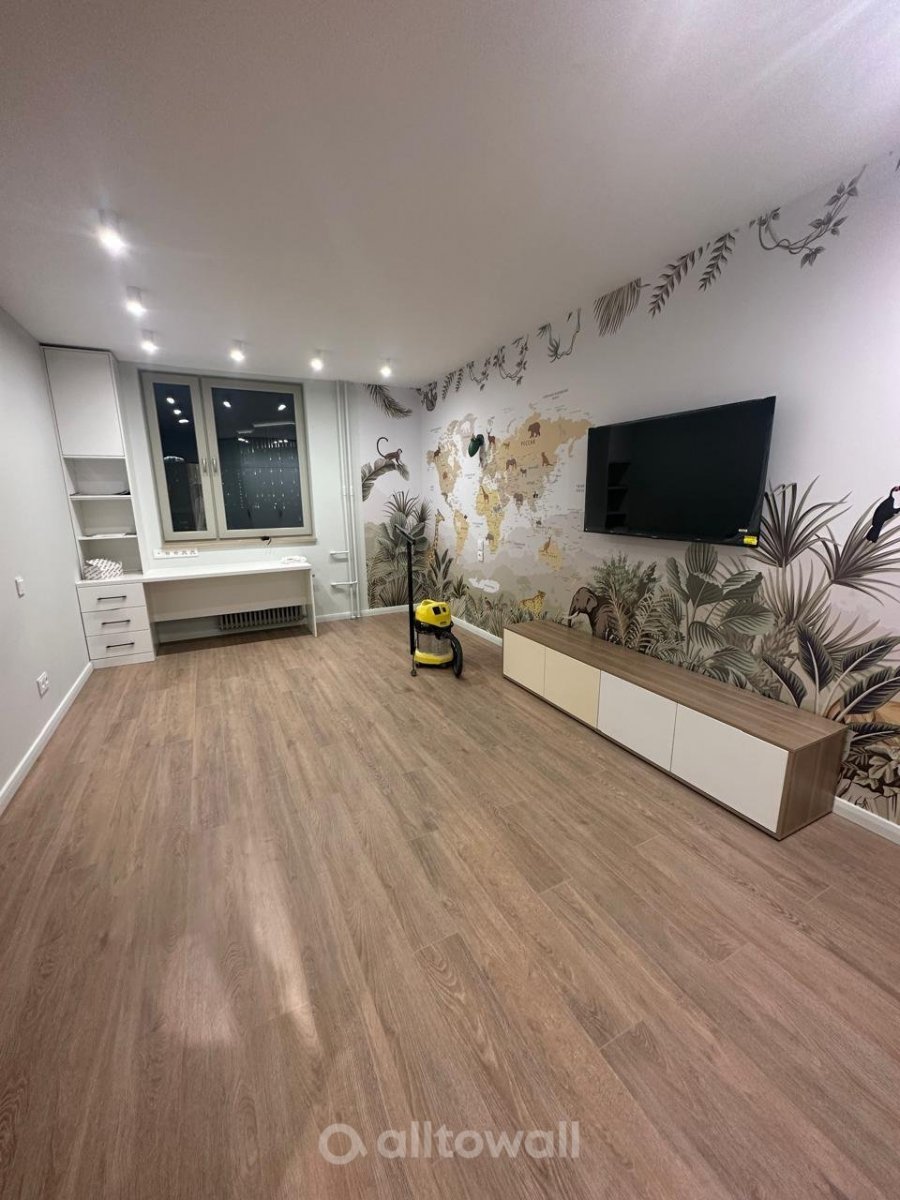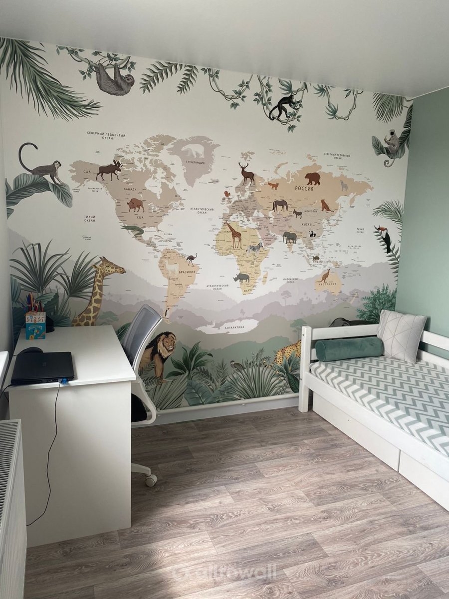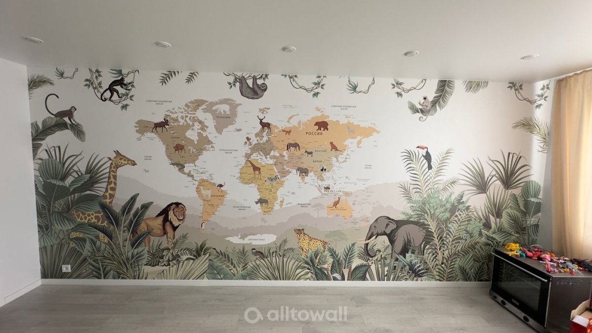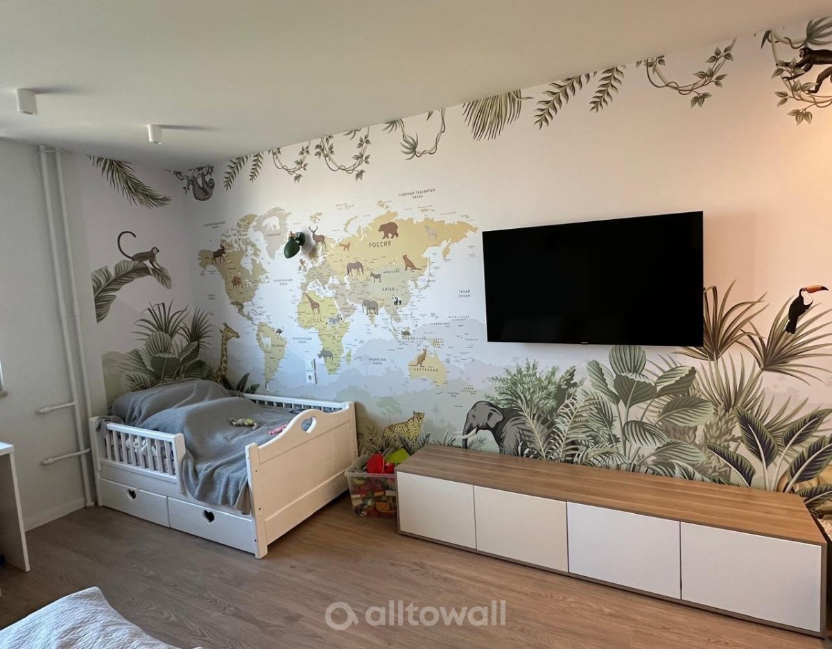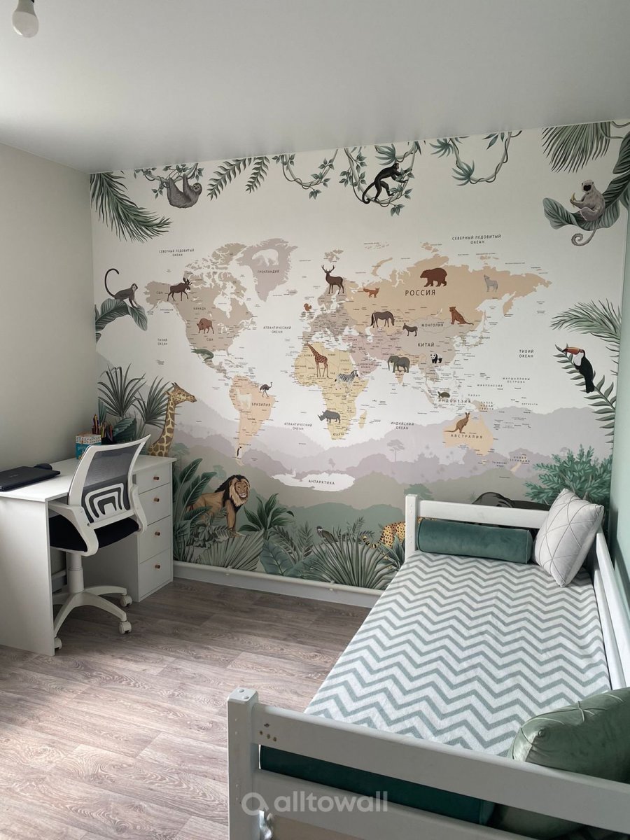 Обои "Детская карта мира с тропическими животными" в интерьерах наших клиентов