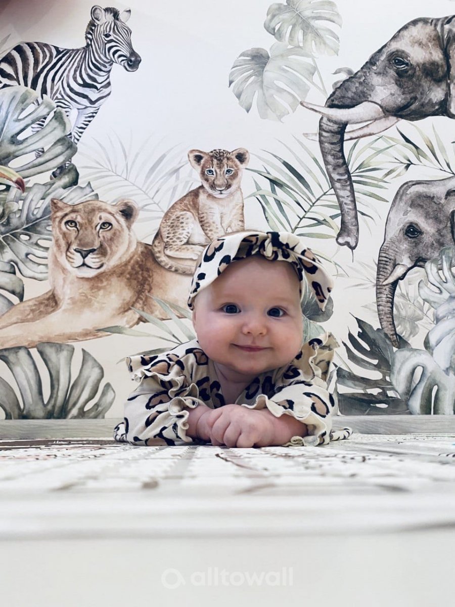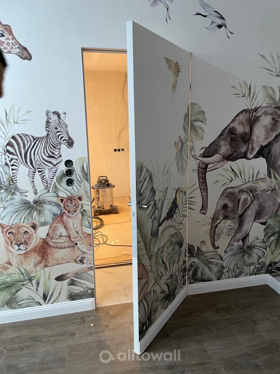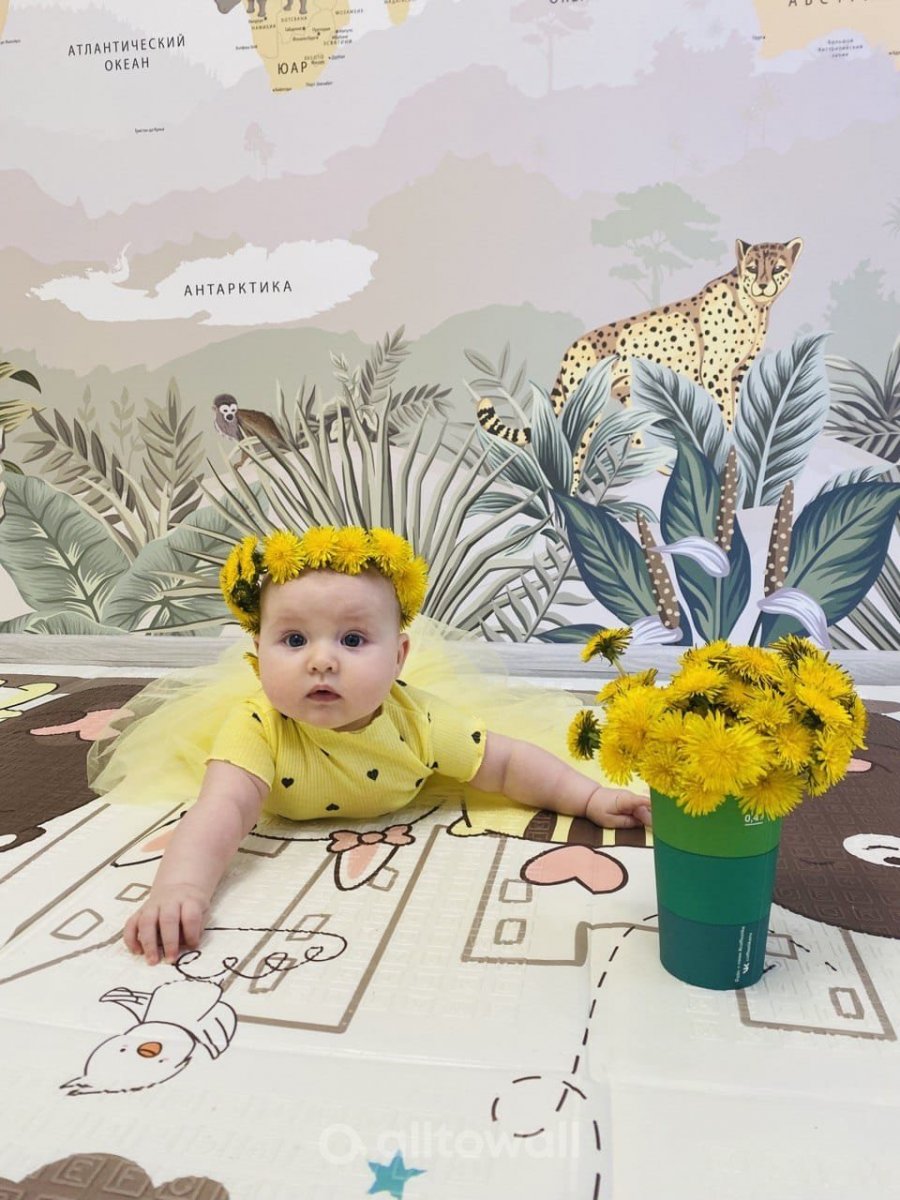 Детские обои с животными могут стать целым игровым миром для ребёнка, по вашему желанию мы нанесём на полотно именные элементы, например, имя вашего малыша, алфавит. При необходимости масштаб сюжета можно изменить, чтобы полотно гармонично смотрелось на стене, независимо от её размеров.