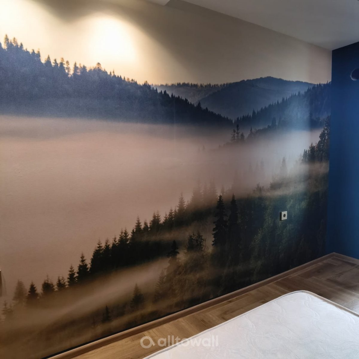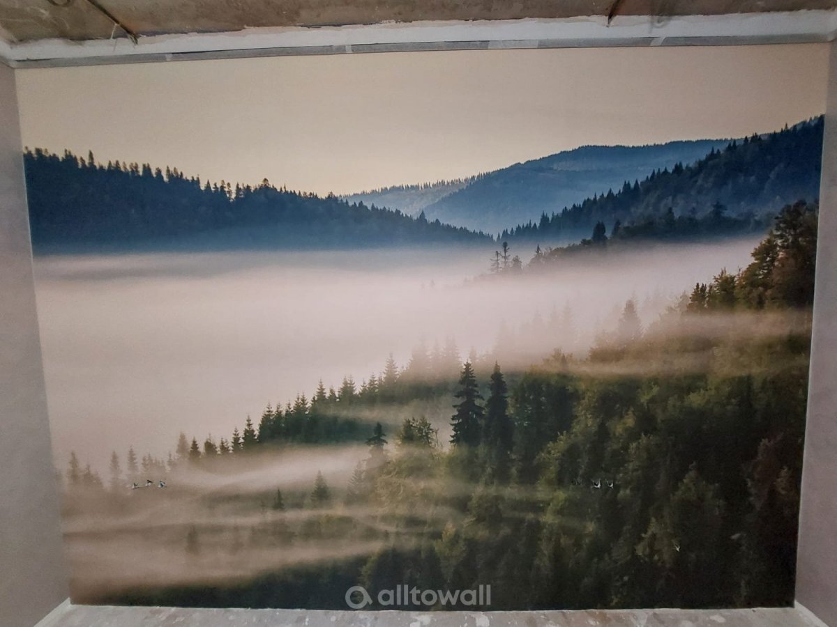 Обои «Горные туманы» станут идеальным выбором для спальни или гостиной. При необходимо принт можно масштабировать, изменить цветовую палитру по запросу Заказчика.