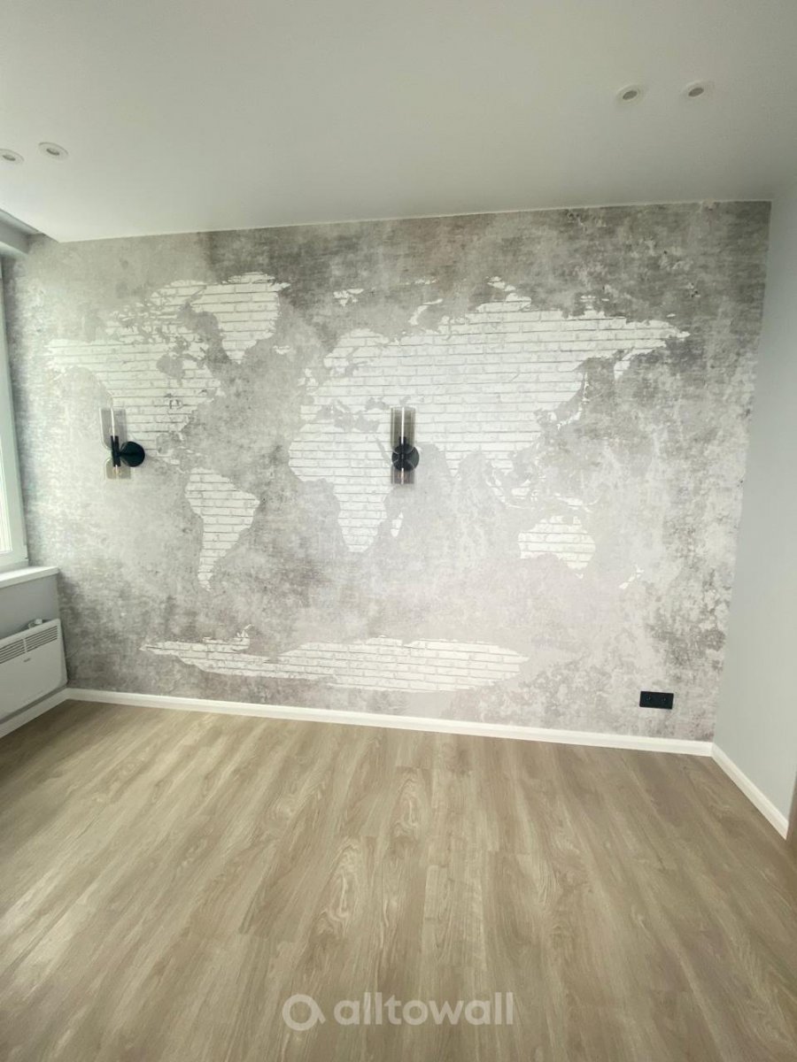 Кирпичная карта мира-2 выполнена в виде стилизованного изображения контуров материков на бетонной стене. Такие обои станут отличным выбором для индустриального или минималистского стилей, интерьеров Лофт. Покрытие рекомендуется для акцентного декорирования, сочетания с однотонными или градиентными обоями.