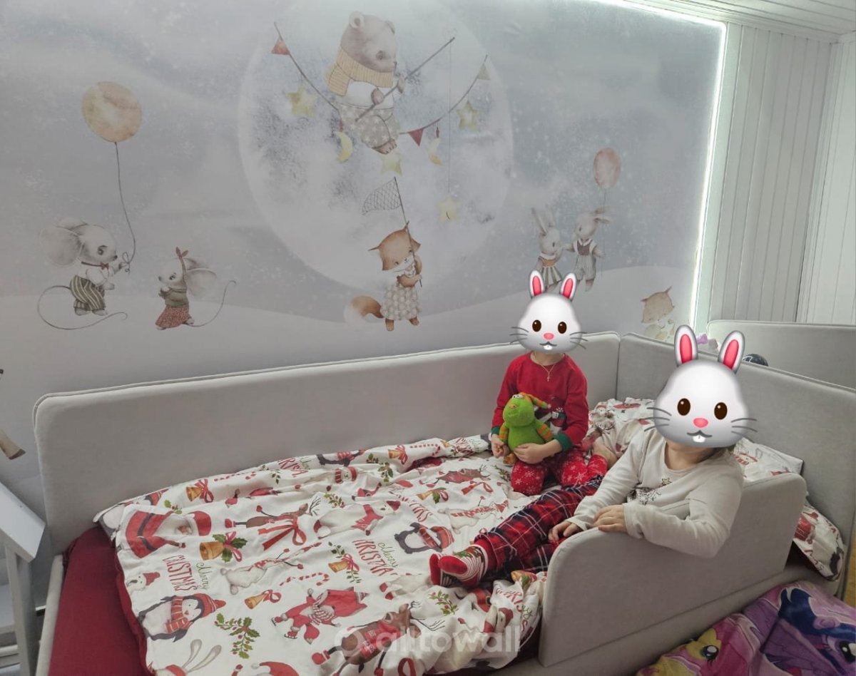 Обои «Лунные приключения» выполнены в светлой гамме оттенков с применением акварельной техники. Основной сюжет – прогулка по поверхности Луны, изображения лесных зверушек, которые общаются под небом с россыпью сверкающих звёзд. Любой малыш будет в полном восторге от такого оформления своей комнаты.