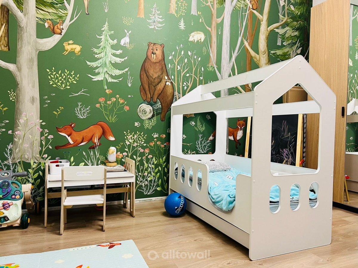 Обои из серии «По следам» станут отличным решением для комнаты маленького ребёнка. Они выполняют сразу несколько задач. Это создание гармоничной атмосферы, идеально подходящей для отдыха и досуга малыша. Именно природные темы рекомендуются в этом возрасте, особенно с использованием оттенков зелёного, который благотворно влияет на самочувствие и настроение. Вторая важная задача – правильно развитие. Ребёнок начинает познавать окружающий мир, знакомится с флорой и фауной, учится бережному отношению к окружающим его существам.