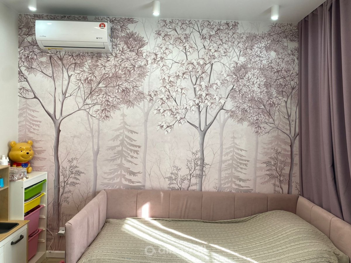 Обои с видами леса подходят для фонового или акцентного декора. Рисунок ненавязчивый, лёгкий, его можно использовать в качестве фона для спальни в стиле Прованс. Принт дополнит общую идею обстановки, станет базой для выбора мебели и предметов декора. На фоне таких покрытий интересно смотрятся белые изящные комоды, резные спинки для кровати или столы на тонких ножках. Текстиль рекомендуется подбирать в оттенках, совпадающих с используемыми для отдельных элементов. При необходимости детали принта можно увеличить или уменьшить, изменить палитру в соответствии с особенностями интерьера. Такие услуги нашими художниками предоставляются бесплатно. Надо только отправить фото обстановки и указать пожелания, касающиеся изображения.
