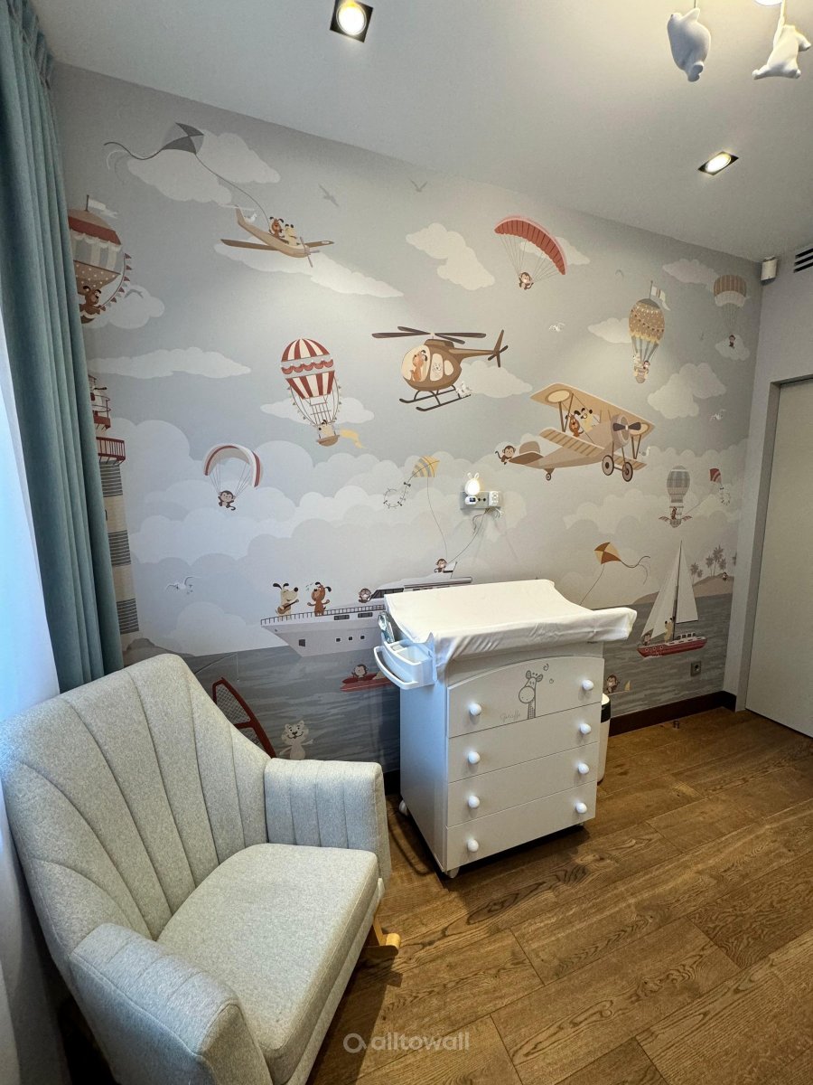 Обои на текстильной или флизелиновой основе производятся из проверенных, безопасных и экологичных материалов. Мы можем помочь с подбором материала — это может быть бесшовное полотно, которое монтируется без стыков, или рулонные обои по индивидуальным размерам стены. Если ваш ребёнок любит рисовать на стенах, присмотритесь к материалу PRO — это антивандальные обои на флизелиновой основе. А если вы хотите добавить обоям эффект лёгкой ряби на водной глади, ваш выбор — SCANDI. Другие обои с морским сюжетом вы можете посмотреть в нашем каталоге.